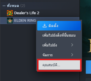 **3.1 คลิกขวาไปที่รายชื่อเกมแล้วเลือก คุณสมบัติ / Properties**